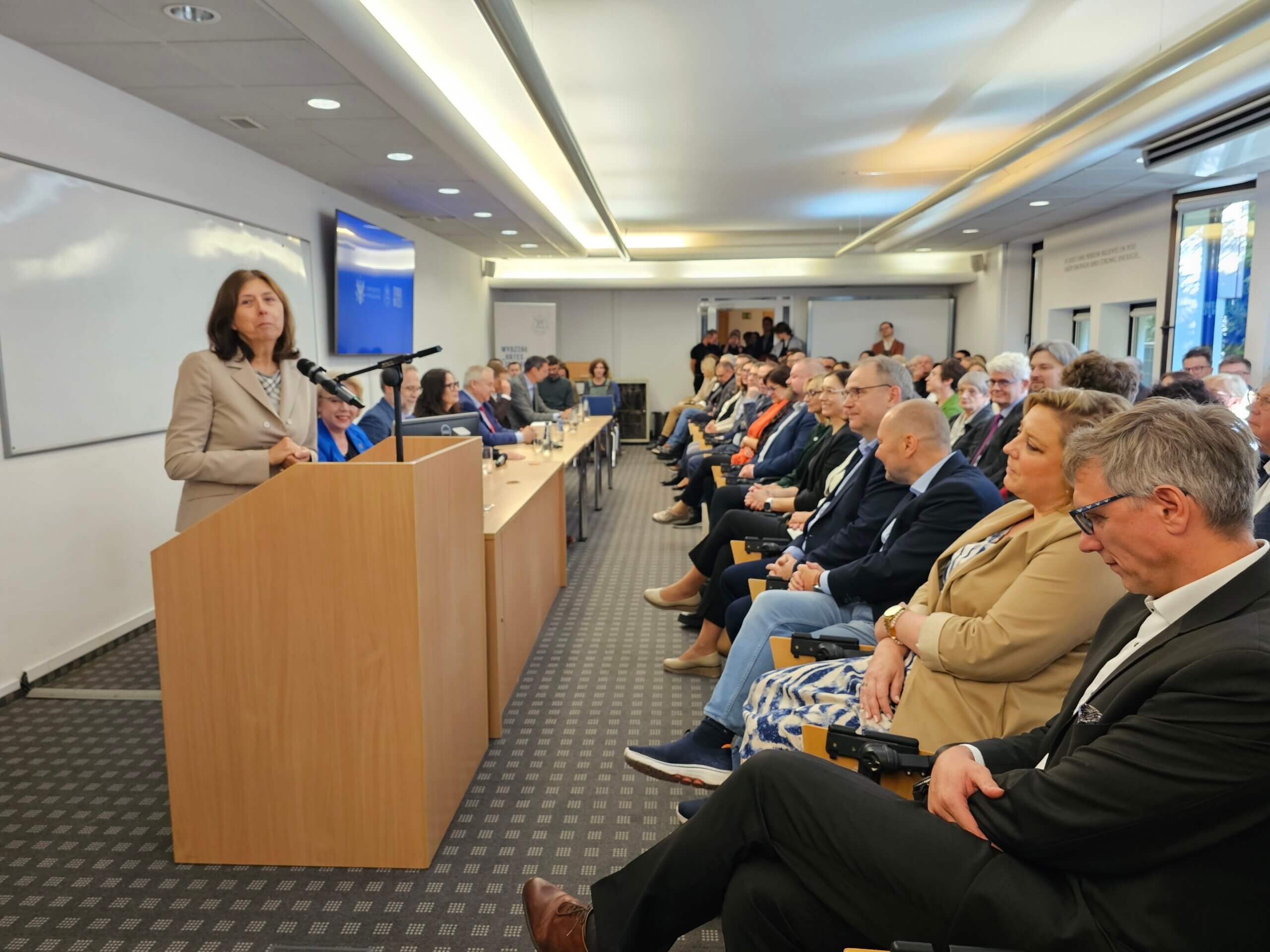 Dziekan Wydziału, dr hab. Agata Zalewska, prof. ucz., powitała licznie zgromadzonych gości, w tym Prorektor UW ds. rozwoju – prof. dr hab. Ewę Krogulec, Prorektora UW ds. współpracy i spraw pracowniczych – prof. dr. hab. Sambora Gruczę, a także całą społeczność Wydziału.