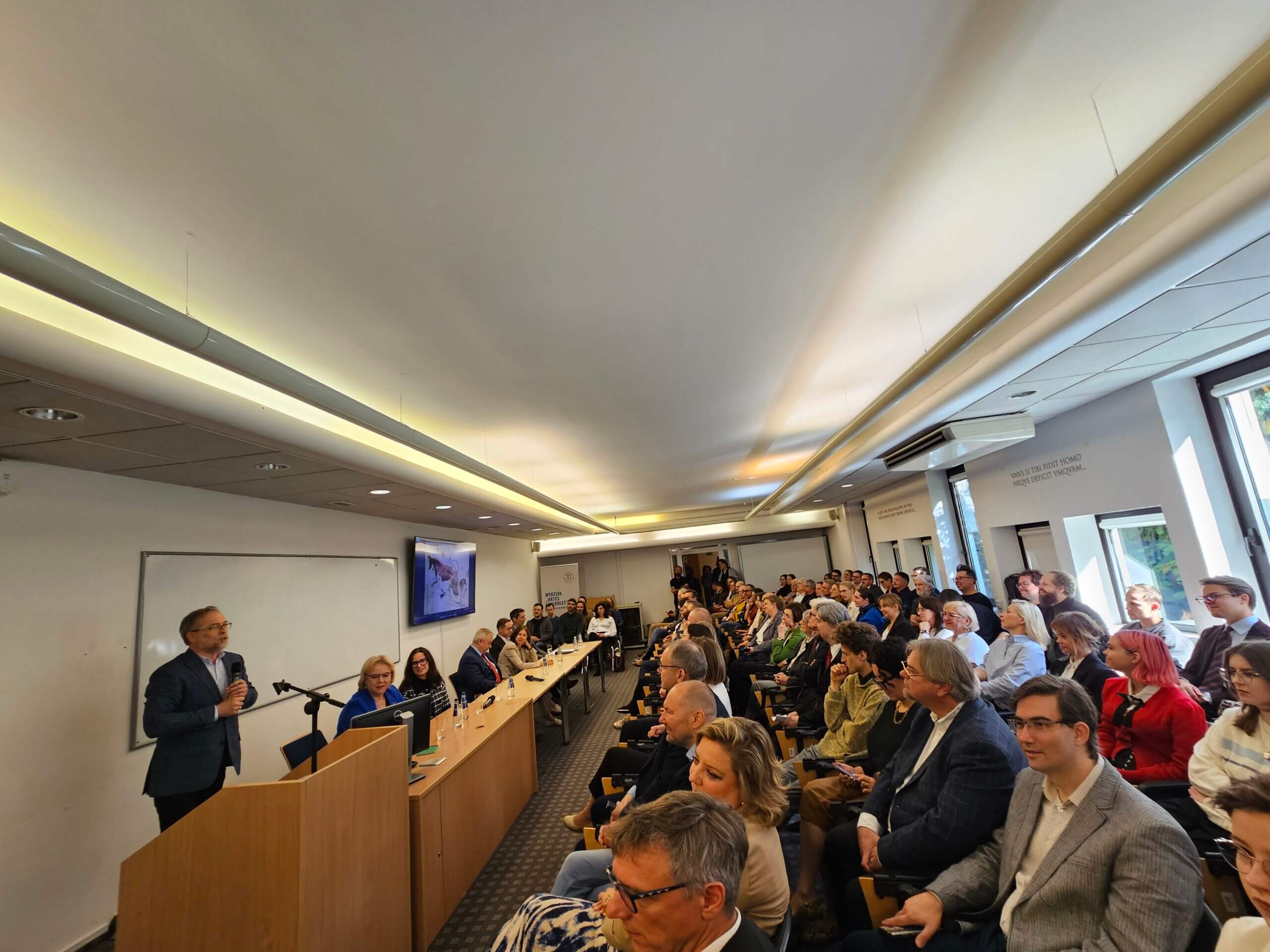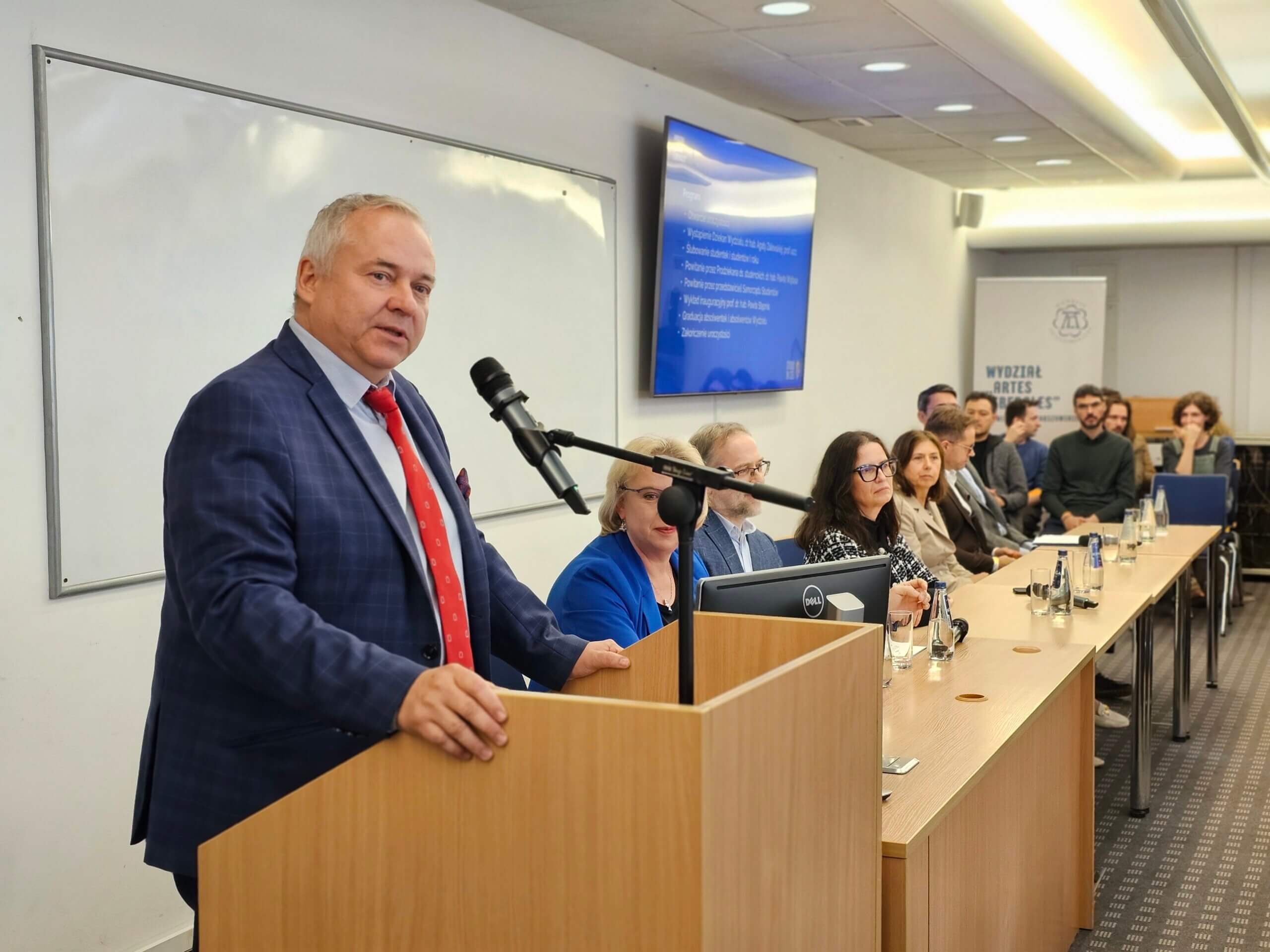 Po oficjalnym otwarciu uroczystości i ślubowaniu nowych studentów uczestnicy wysłuchali pierwszego w tym roku akademickim wykładu na naszym Wydziale. Wystąpienie pt. „Czego w dobie sztucznej inteligencji uczy nas XVI-wieczny humanista Szymon Marycjusz z Pilzna?” wygłosił prof. dr hab. Paweł Stępień.