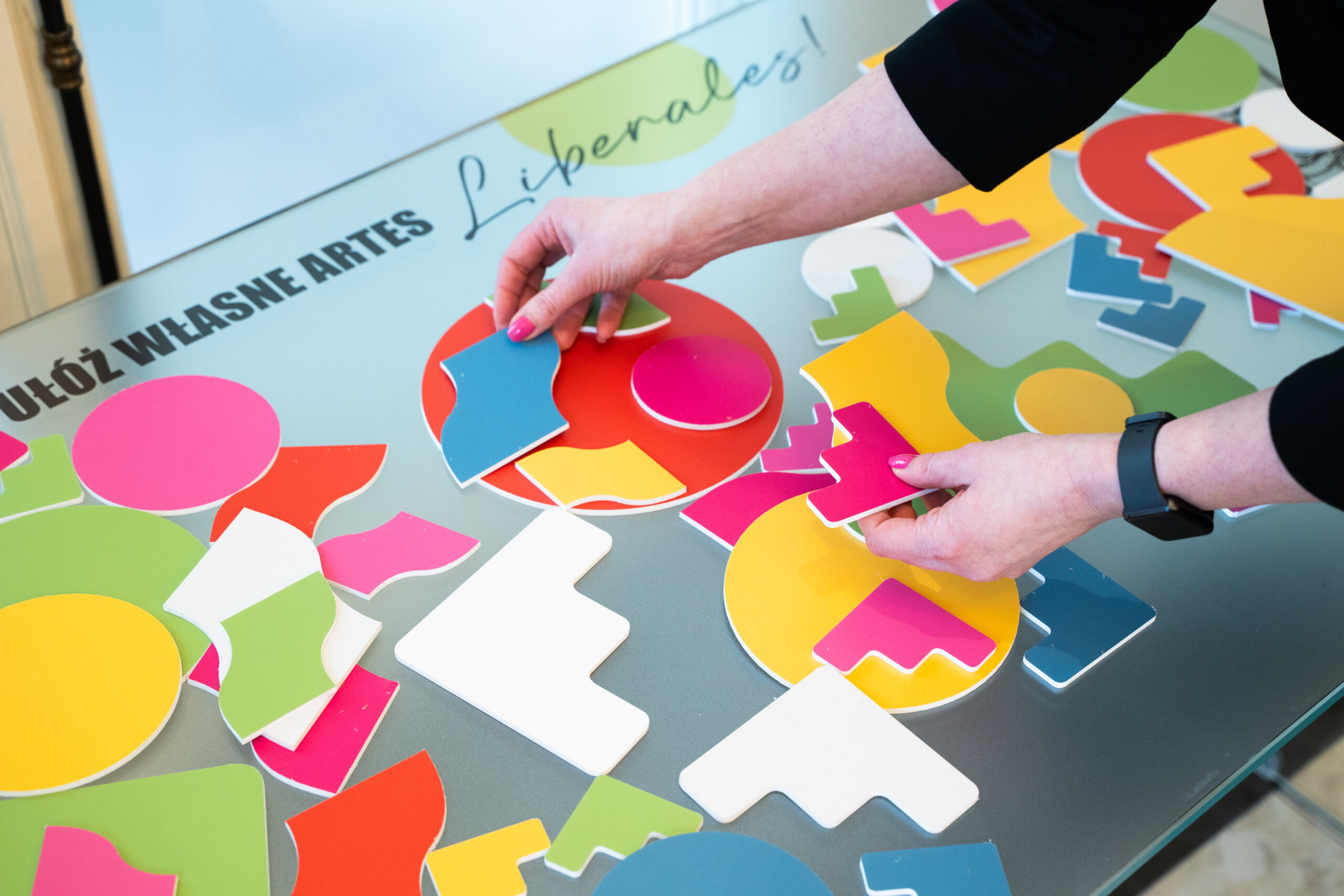 Integralnym elementem wystawy jest interaktywna instalacja inspirowana logo Wydziału. Zwiedzający mogą układać z kolorowych elementów własne kompozycje, symbolicznie tworząc swoje „artes liberales” i odkrywając relacje między różnymi dziedzinami wiedzy.